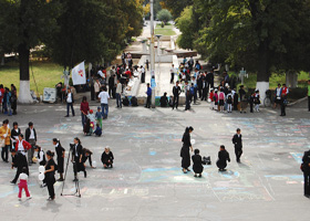 In various cities of Kyrgyzstan such as Naryn, Balykchy, Jalalabad, Osh, Talas, and Bishkek Б’ Art conducted children's drawing competitions from different schools by painting on street asphalt and on canvases in public spaces, followed by contextual master classes. The aim of the festival was to mobilize public efforts toward forging a culture of peace, friendship, tolerance, unity and healthy life-style among the citizens of Kyrgyzstan.